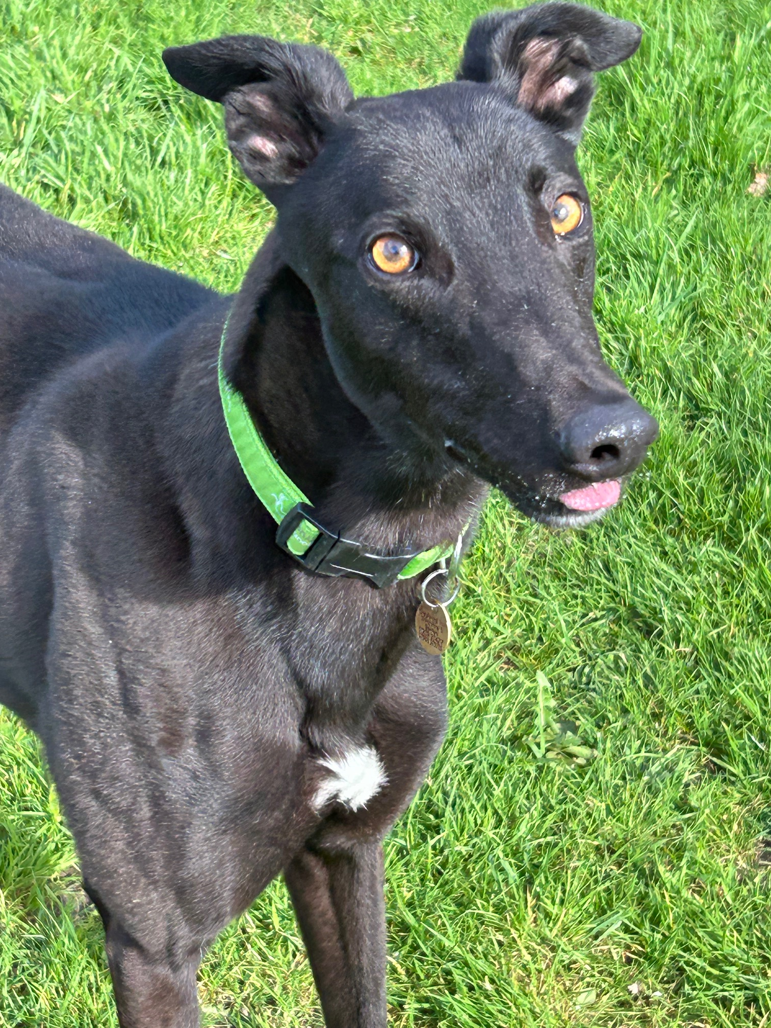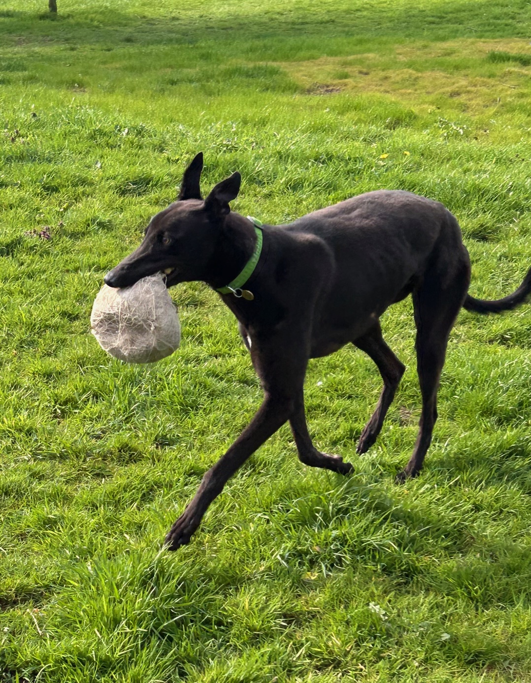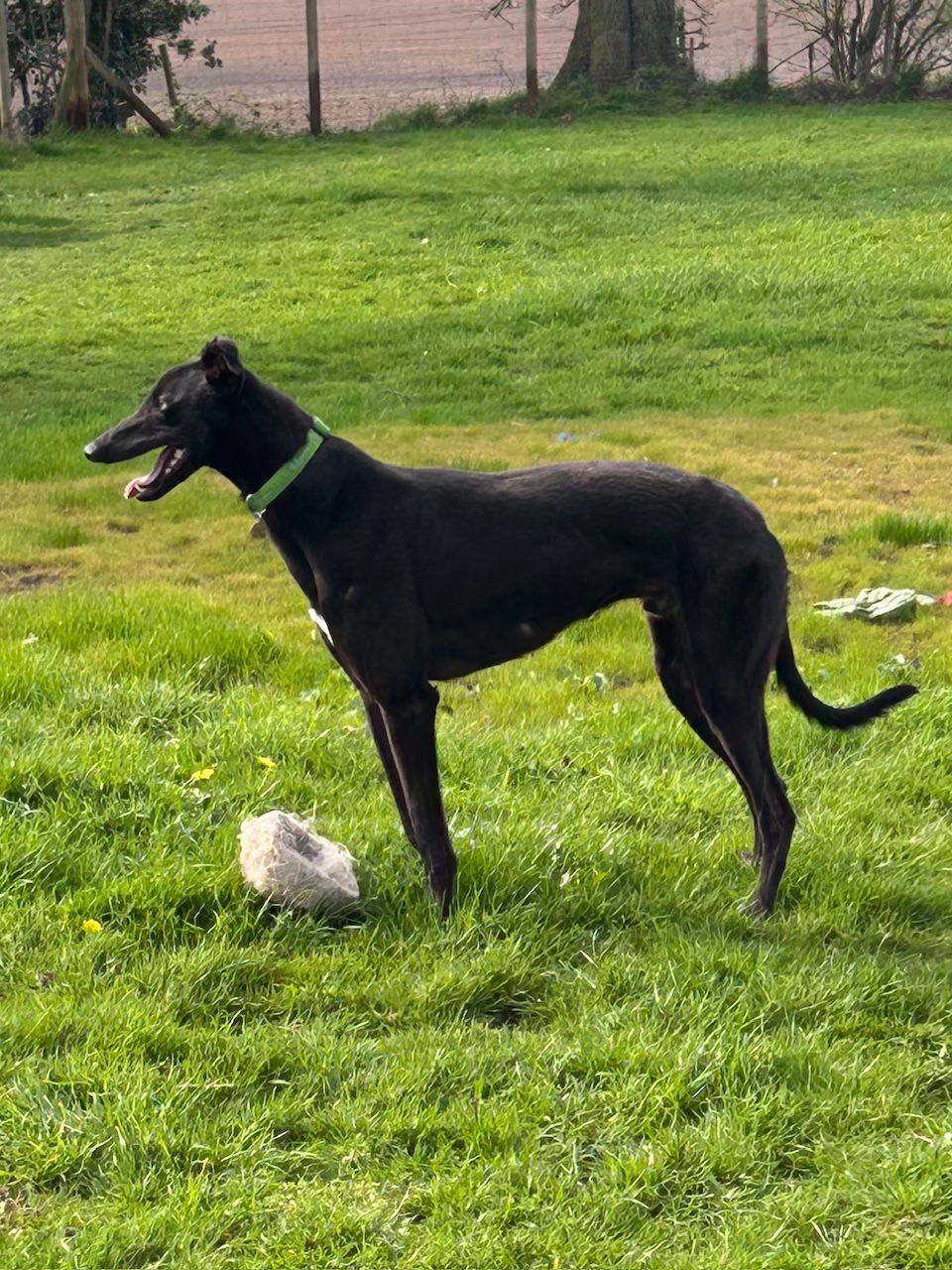 Meet Bestie, racing name Coppens Best, who has recently joined us from Greyhound Trust South West Wales. He is a handsome black lad, who is 4 1/2 yrs old (DOB 03/08/2021). Bestie gets on well with the other greyhounds but couldn’t live with a small dog and would benefit from further socialisation with other breeds - something we are working on. He enjoys his walks and loves a game of football in the paddock - he is quite obsessed with balls!
